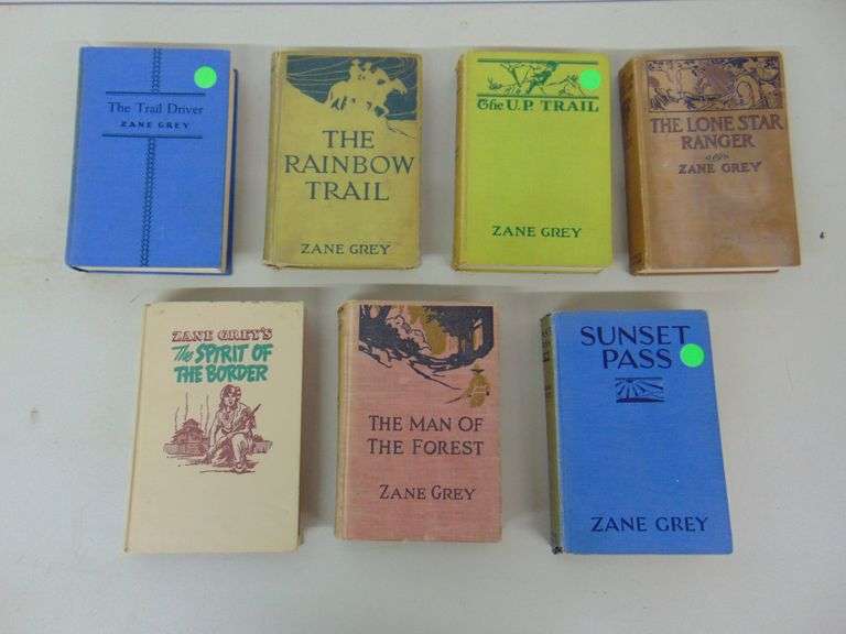 Titles include The Lone Star Ranger, The Man Of The Forest, The Spirit Of The Border, The Trail Driver, Sunset Pass, The Rainbow Trail, and The U.P. Trail. All are HC, and in good condition.