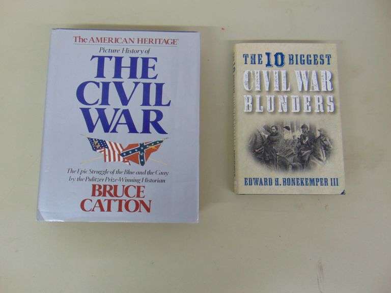 Titles include American Heritage, The Civil War, by Bruce Catton, illustrated history, and The 10 Biggest Civil War Blunders, by Edward Bonekemper III. Both are HC with DJ, and in good condition.