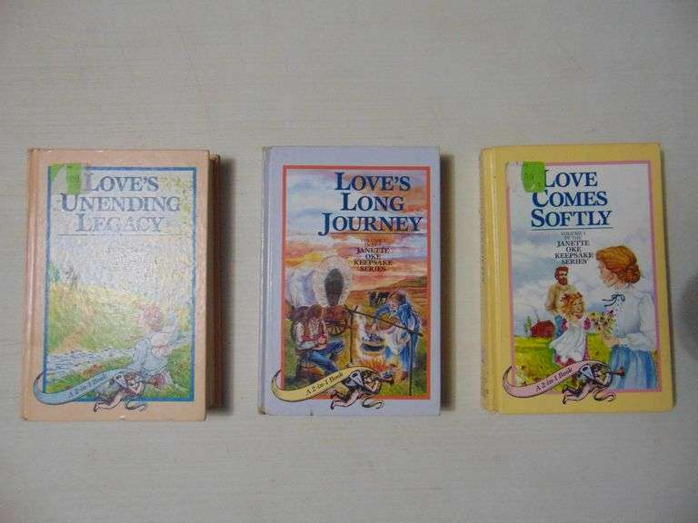 Includes the complete set of the Keepsake Series. Those titles include Love Comes Softly, Loves Enduring Promise, Loves Long Journey, Loves Abiding Joy, Loves Unending Legacy, and Loves Unfolding Dream. These are all in 3 double volume books, that are HC and in good condition.