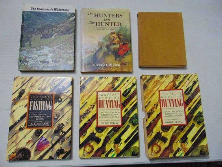Titles include The Sportsman's Wilderness, The Hunters and The Hunted, The Ben East Hunting Book, The Complete Book of Fishing, and The Complete Book of Hunting. All are HC, and in good condition. The last 2 books come in a slip case.