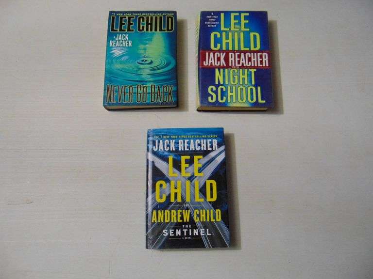Titles include Never Go Back, Night School, and The Sentinel. All are HC with DJ, and in good condition.