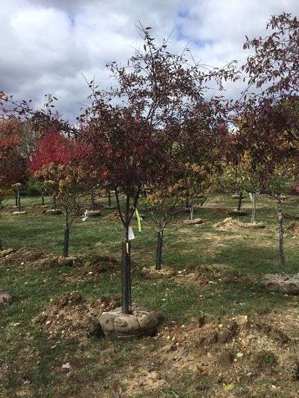 Mature Size: 15-20' H x 10-15' W, Bright pinkish-red flowers combined with deep purple cut-leaf foliage, 1/2" maroon fruit for fall interest, Excellent resistance to diseases including fire-blight. Caliper: 2.5" Height: 10'